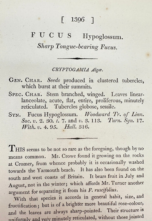 Antique Print - Sowerby - Fucus Hypoglossum - Sharp Tongue-bearing Fucus - F1