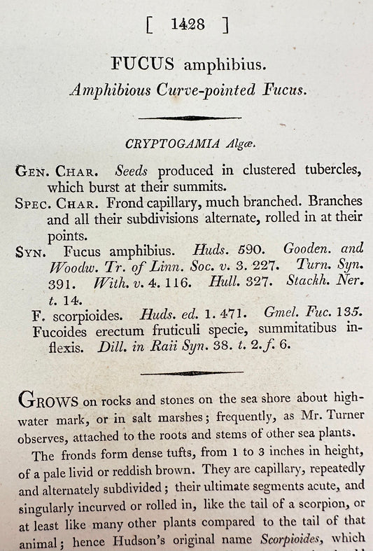 Antique Print - Sowerby - Fucus Amphibius - Amphibious Curve-pointed Fucus - F1