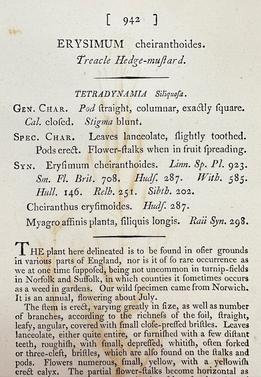 Antique Print - Sowerby - Erysimum Cheiranthoides - Treacle Hedge-mustard - F1