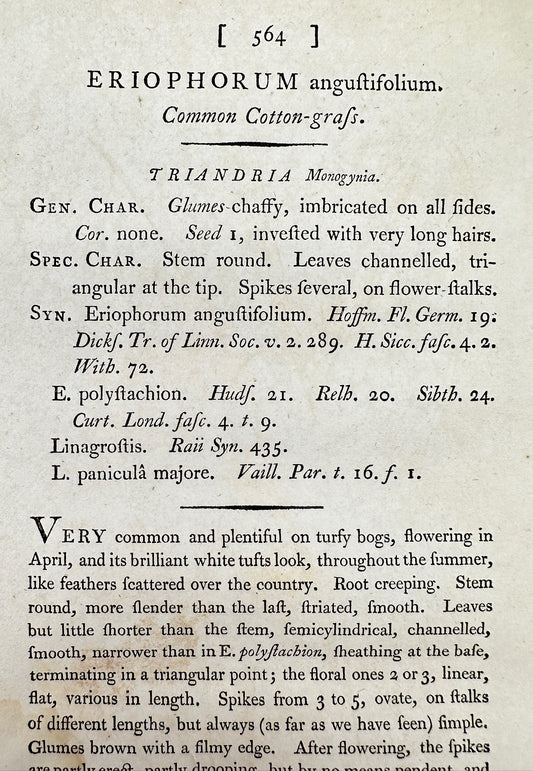 Antique Print - Sowerby - Eriophorum Angustifolium - Common Cotton-grafs - F1