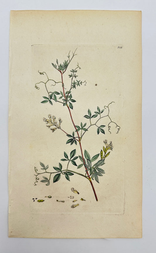 Antique Print - Sowerby - Fumaria Claviculata - Climbing Fumitory - F1