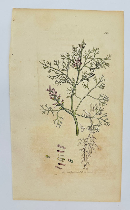 Antique Print - Sowerby - Fumaria Parviflora - Small-flowered Fumitory - F1