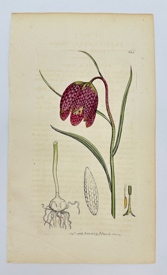 Antique Print - Sowerby - Fritillaria Meleagris - Snake's Head Fritillary - F1