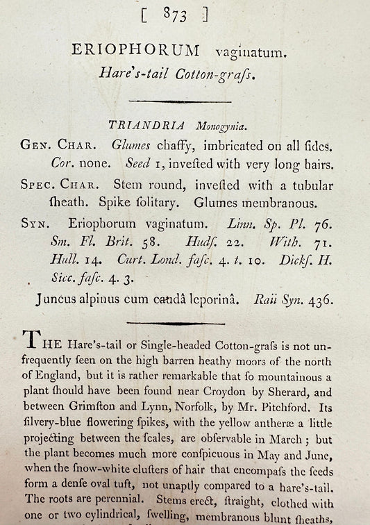 Antique Print - Sowerby - Eriophorum Vaginatum - Hare's-tail Cotton-grass - F1