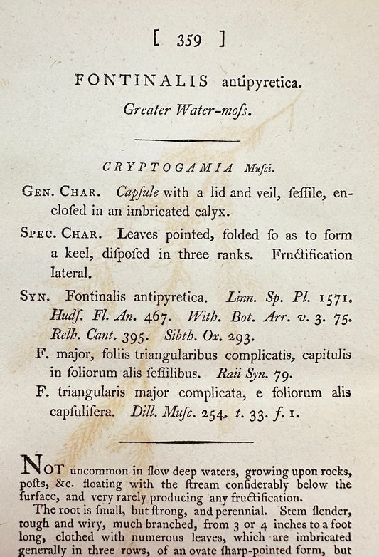 Antique Print - Sowerby - Fontinalis Antipyretica - Greater Water-mofs - F1