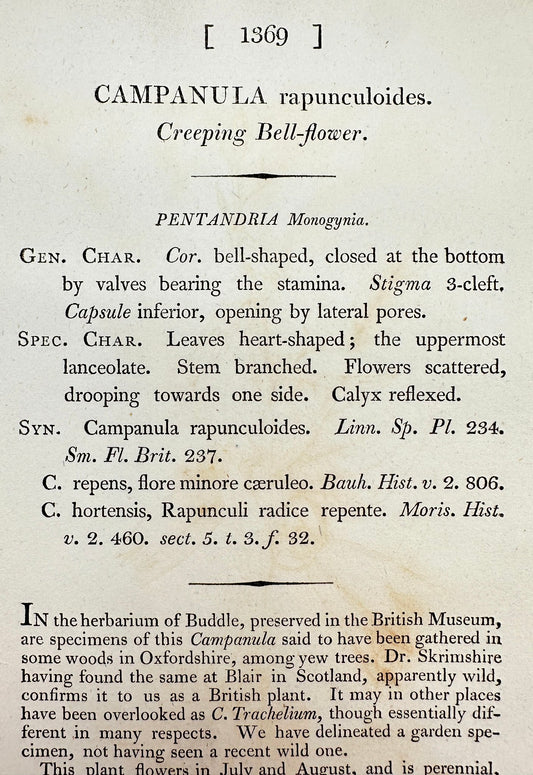 Antique Print - Sowerby - Campanula Rapunculoides - Creeping Bell-flower - F1