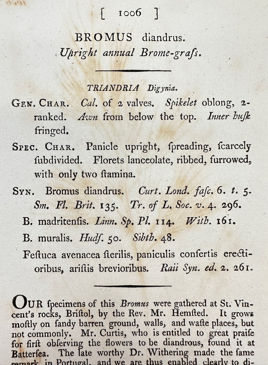 Antique Print - Sowerby - Bromus Diandrus - Upright annual Brome-grafs - F1