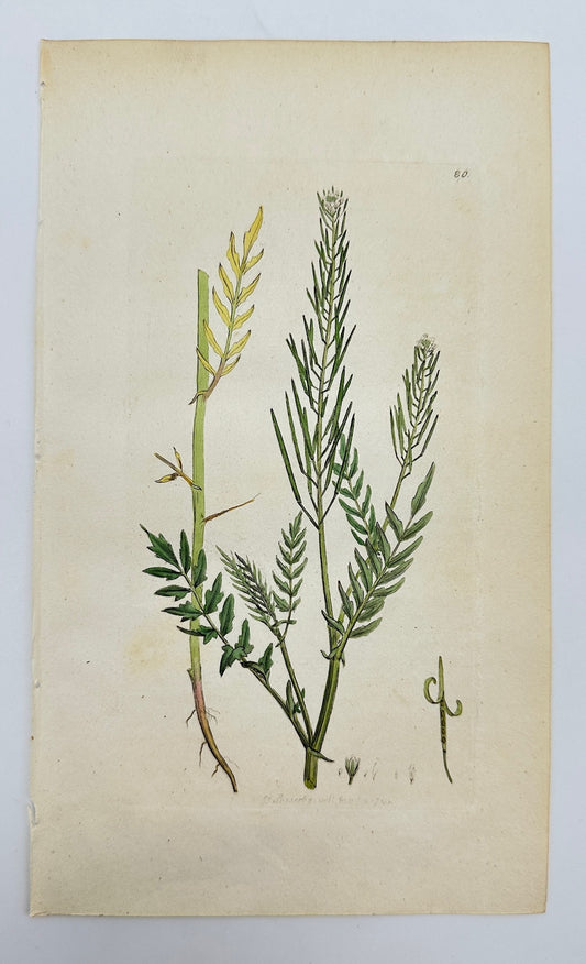 Antique Print - Sowerby - Cardamine Impatiens - Nrrow-leaved Bittercress - F1