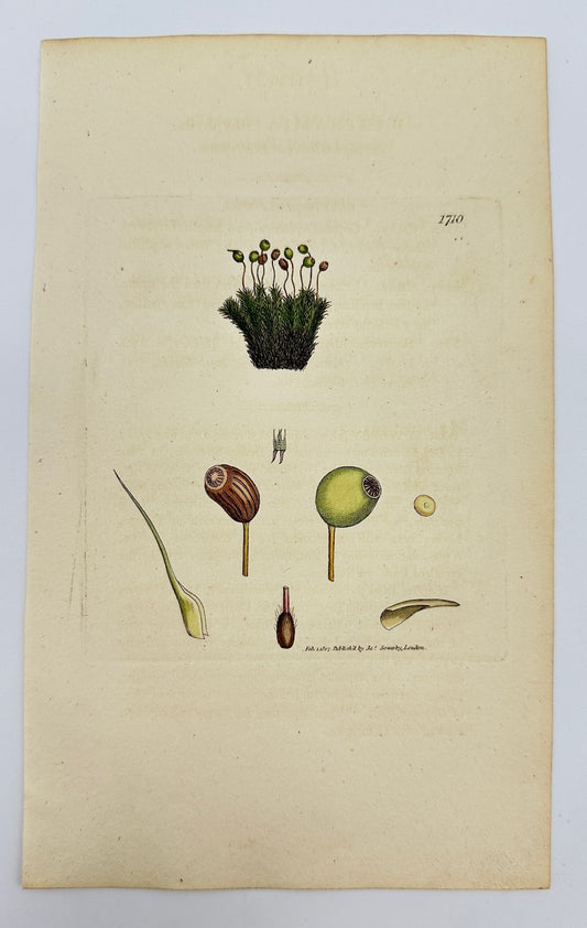 Antique Print - Sowerby - Bryum Bimum - Long-stalked Bog Thread-moss - F1
