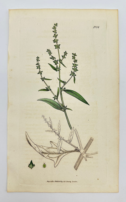 Antique Print - Sowerby - Atriplex Erecta - Upright Spear-leaved Orache - F1