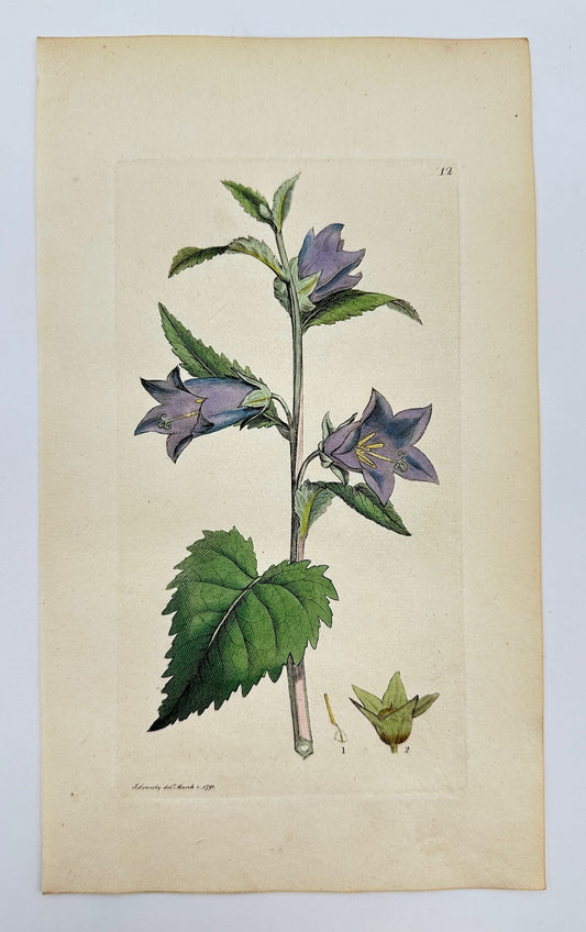 Antique Print - Sowerby - Campanula Trachelium - Nettle-leaved Bellflower - F1