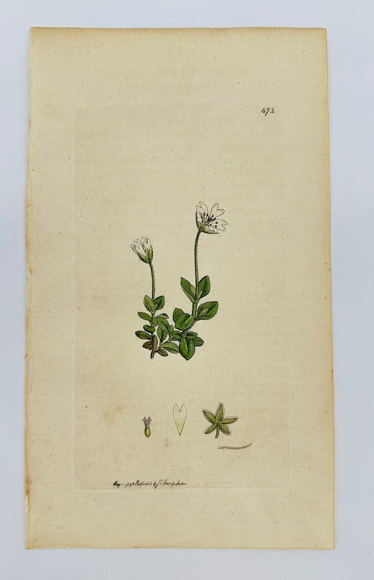 Antique Print - Sowerby - Cerastium Latifolium - Broad-leaved Chickweed - F1