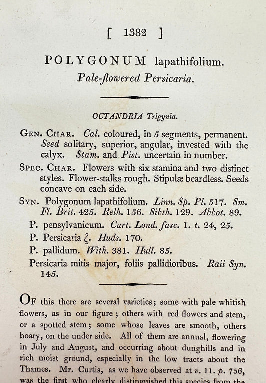 Antique Print - Polygonum Lapathifolium - Pale-flowered Persicaria - F1