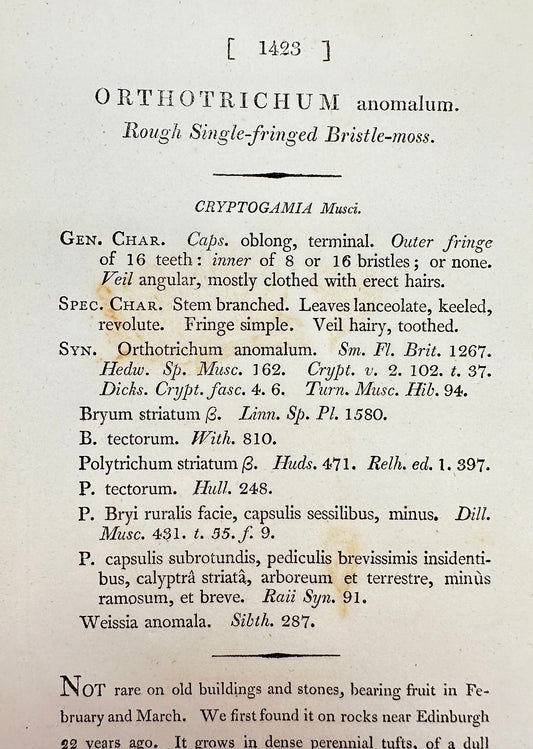 Antique Print - Orthotrichum Anomalum - Rough Single-fringed Bristle-moss - F1