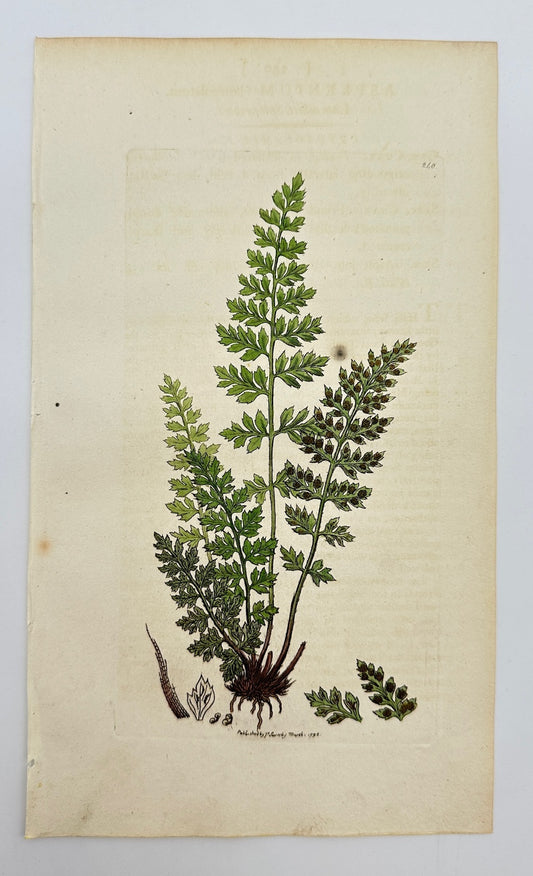 Antique Print - Sowerby - Asplenium Lanceolatum - Lanceolate Spleenwort - F1