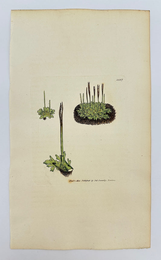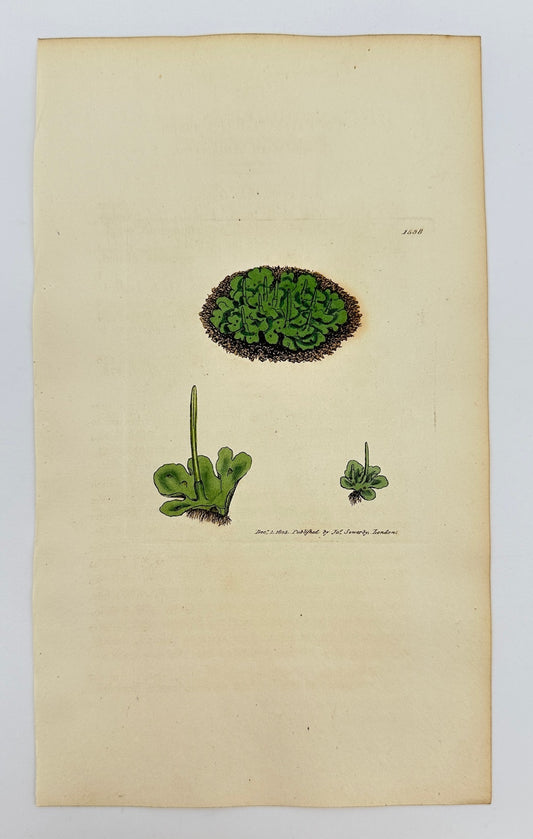 Antique Print - Sowerby - Anthoceros Punctatus - Jagged-leaved Anthoceros - F1