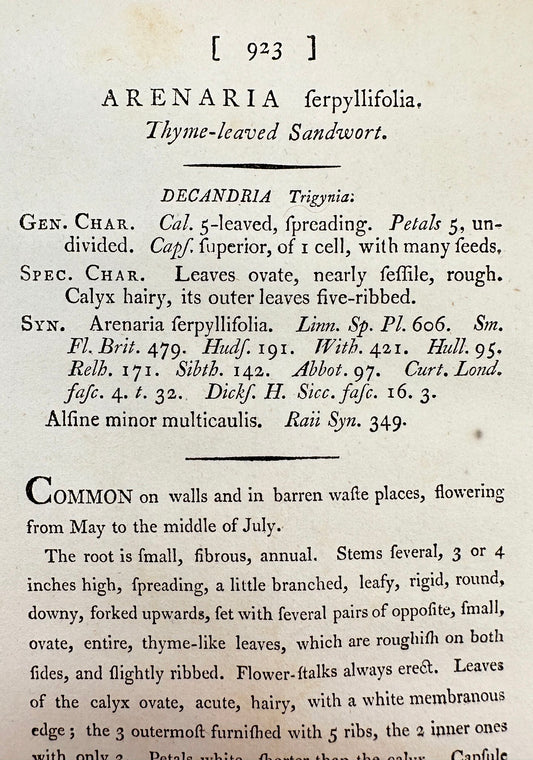 Antique Print - Sowerby - Arenaria Ferpyllifolia - Thyme-leaved Sandwort - F1