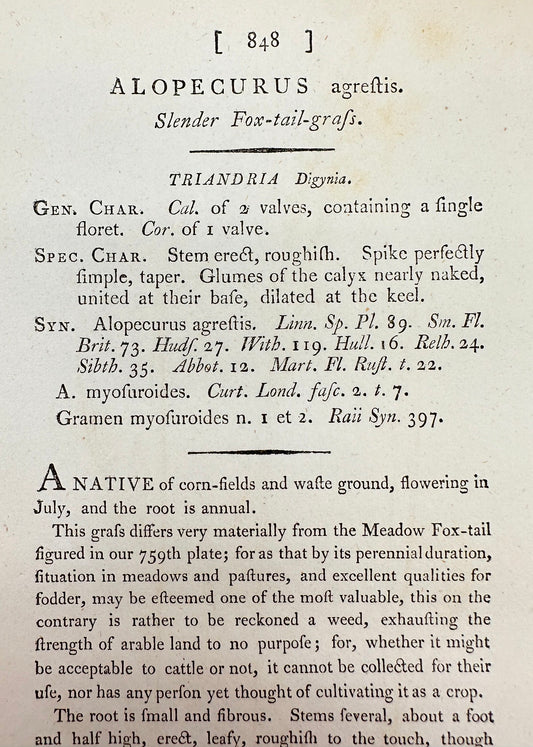 Antique Print - Sowerby - Alopecurus Agreftis - Slender Fox-tail-grafs - F1