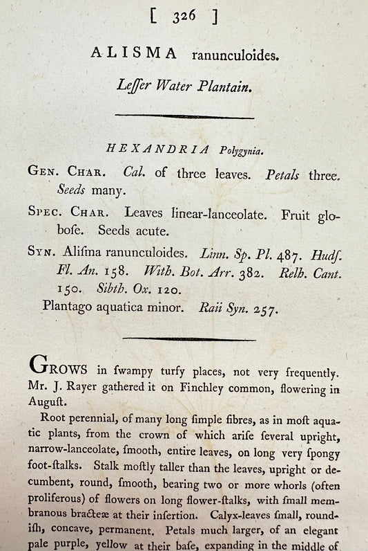 Antique Print - Sowerby - Alisma Ranunculoides - Leffer Water Plantain - F1