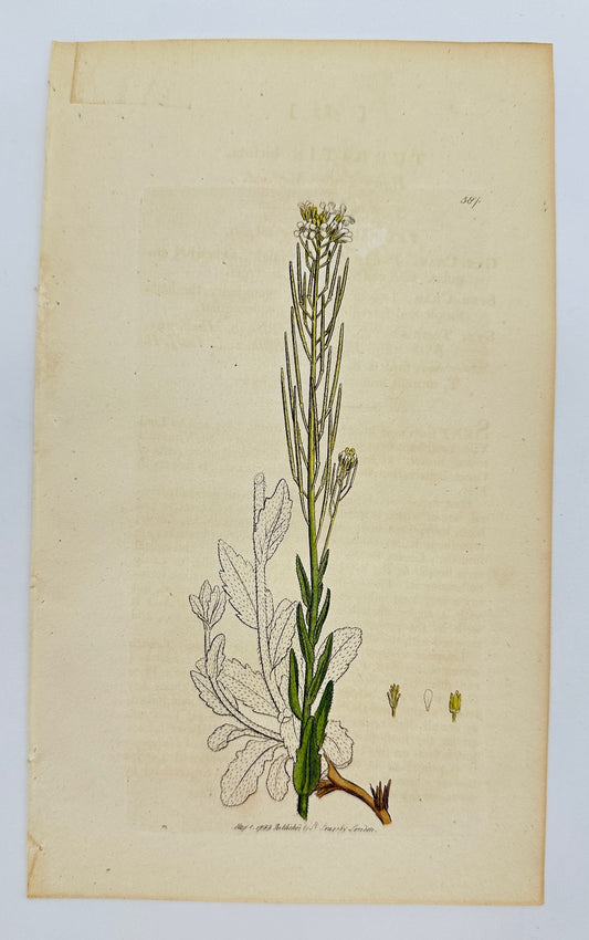 Antique Print - James Sowerby - Turritis Alpina - Alpine Tower Mustard - F1