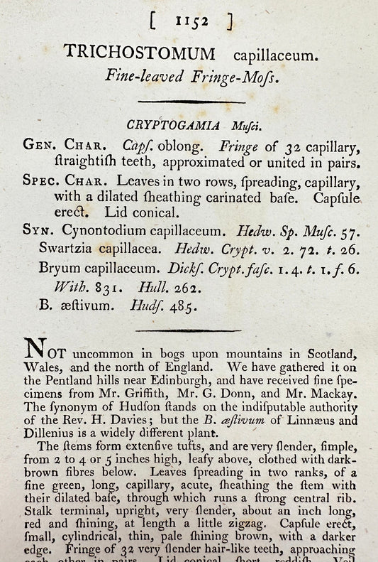 Antique Print - James Sowerby - Trichostomum Capillaceum - haircap Moss - F1