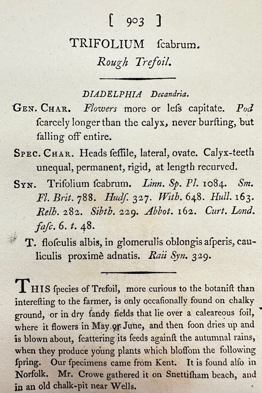 Antique Print - James Sowerby - Trifolium Scabrum - Rough Trefoil - F1