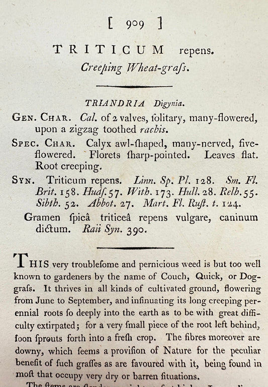 Antique Print - James Sowerby - Triticum Repens - Creeping Wheat-grafs - F1