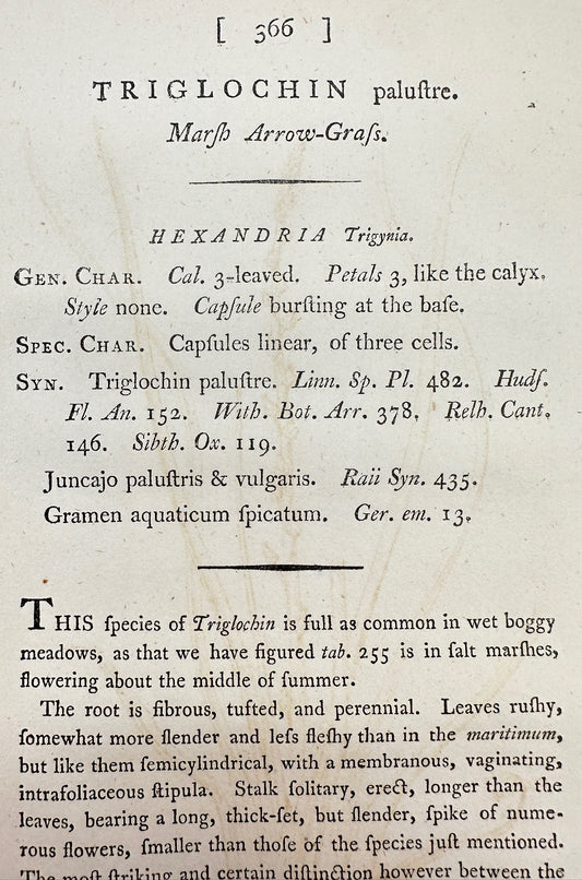 Antique Print - James Sowerby - Triglochin Palustre - Marsh Arrow-Grafs - F1