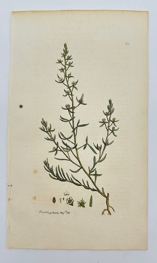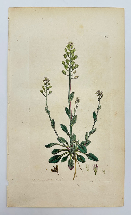 Antique Print - James Sowerby - Thlaspi Arvense - Field Pennycress - F1