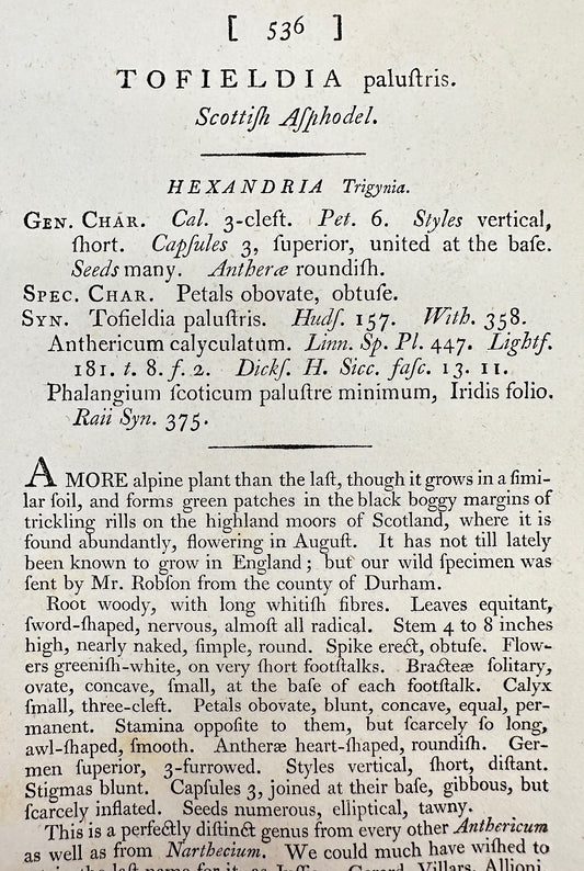 Antique Print - James Sowerby - Tofieldia Palustris - Scottish Asphodel - F1