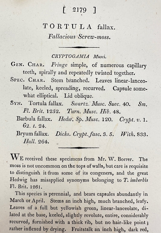 Antique Print - James Sowerby - Tortula Fallax - Fallacious Screw-moss - F1