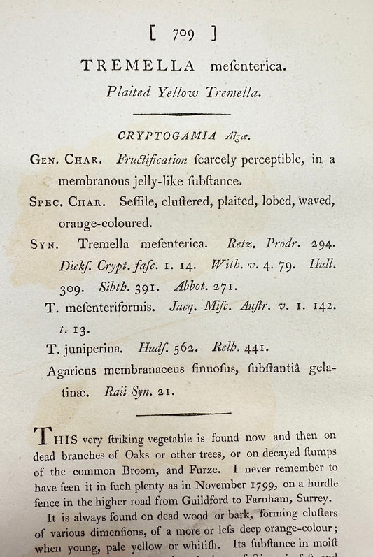 Antique Print - James Sowerby - Tremella Mesenterica - Witch's butter - F1