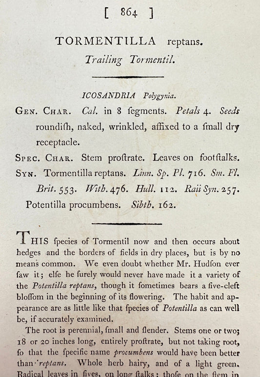 Antique Print - James Sowerby - Tormentilla Reptans - Trailing Tormentil - F1