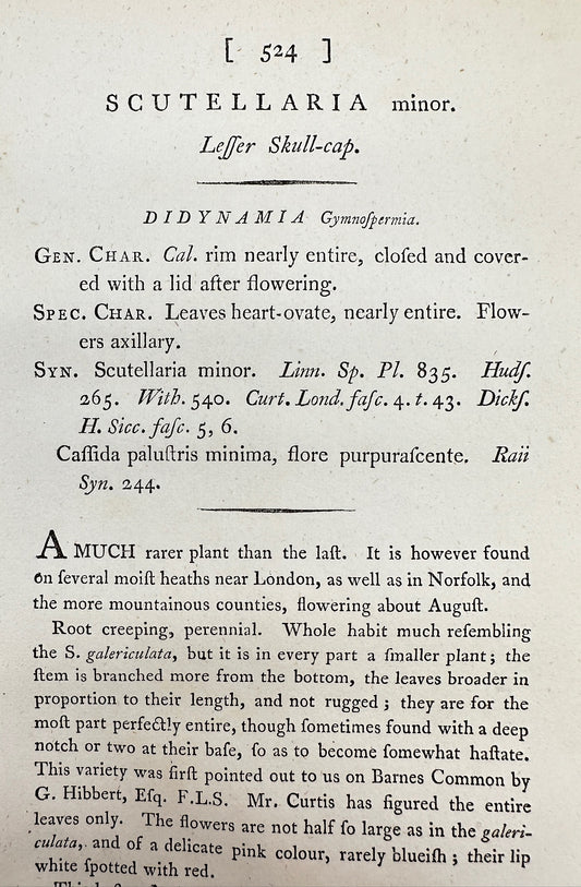Antique Print - James Sowerby - Scutellaria Minor - Leffer Skull-cap - F1