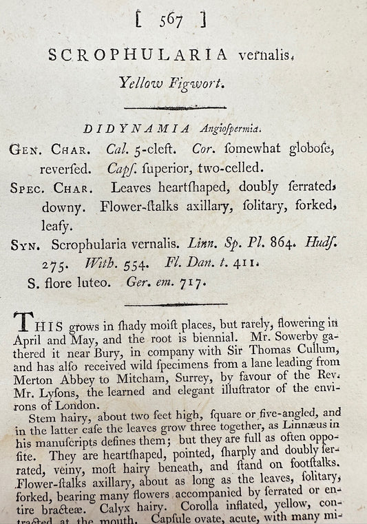 Antique Print - James Sowerby - Scrophularia Vernalis - Yellow Figwort - F1