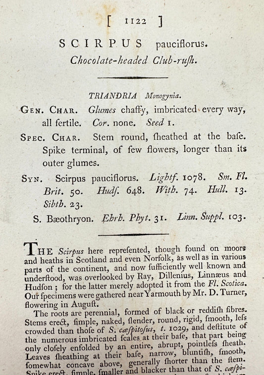 Antique Print - James Sowerby - Scirpus Pauciflorus - Few-Flowered bulrush - F1