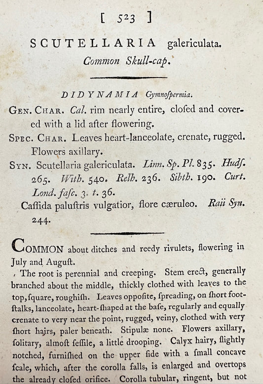Antique Print - James Sowerby - Scutellaria Galericulata - Common Skull-cap - F1