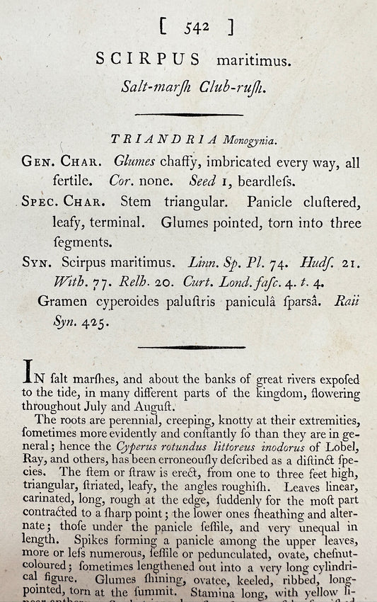 Antique Print - James Sowerby - Scirpus Maritimus - Salt-marsh Club-rush - F1
