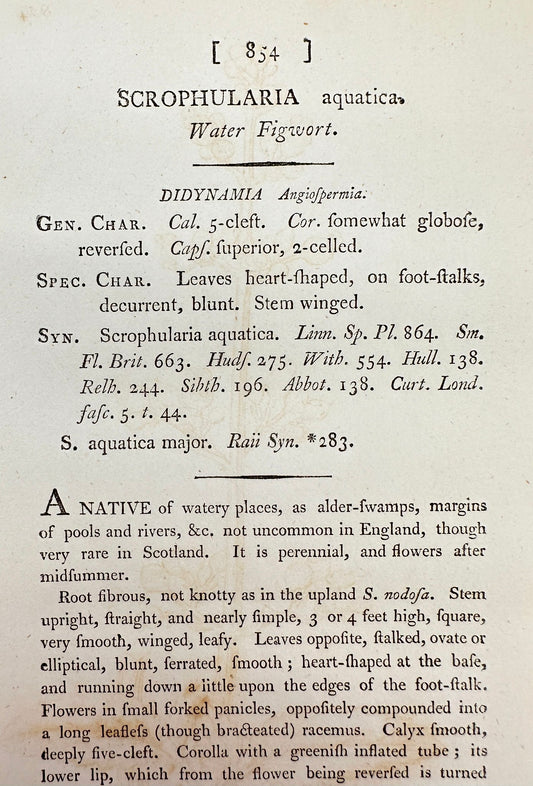 Antique Print - James Sowerby - Scrophularia Aquatica - Water Figwort - F1