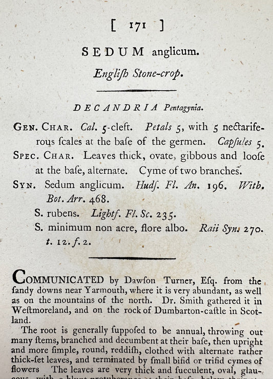 Antique Print - James Sowerby - Sedum Anglicum - English Stone-crop - F1