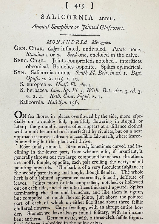 Antique Print - James Sowerby - Salicornia Annua - Annual Samphire - F1