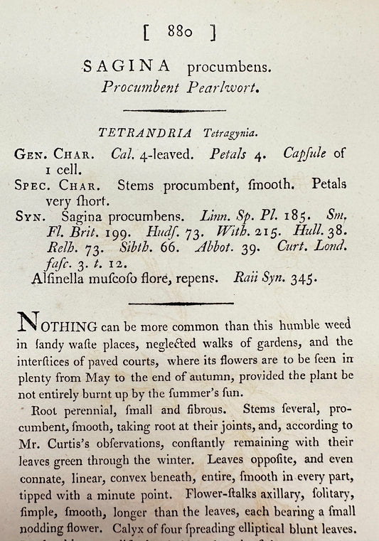 Antique Print - James Sowerby - Sagina Procumbens - Procumbent Pearlwort - F1