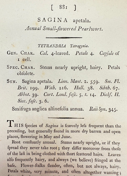 Antique Print - James Sowerby - Sagina Apetala - Apetalous Pearlwort - F1
