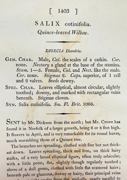 Antique Print - James Sowerby - Salix Cotinifolia - Olive-leaved Willow - F1