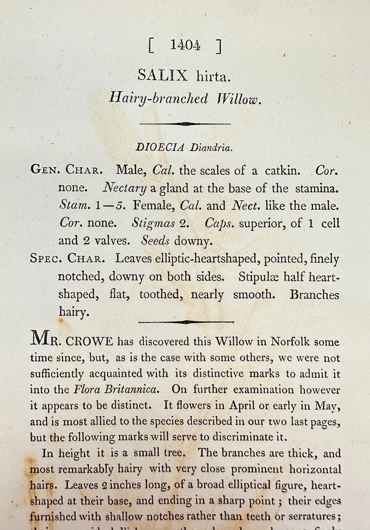 Antique Print - James Sowerby - Salix Hirta - Hairy-branched Willow - F1