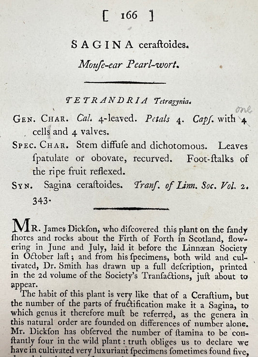 Antique Print - James Sowerby - Sagina Cerasitoides - Moufe-ear Pearl-wort - F1