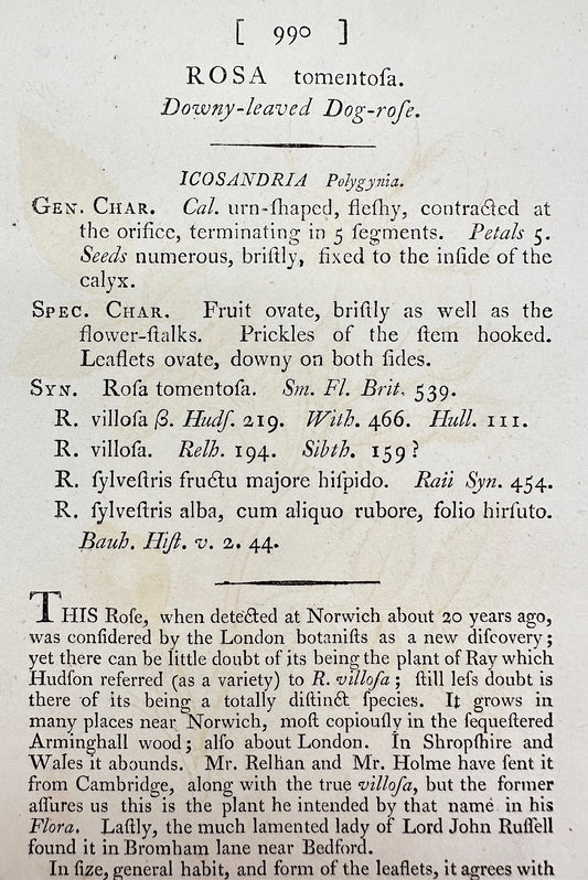 Antique Print - James Sowerby - Rosa Tomentofa - Downy-leaved Dog-rofe - F1