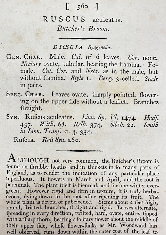 Antique Print - James Sowerby - Ruscus Aculeatus - Butcher's Broom - F1