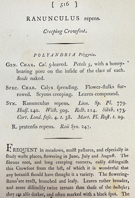 Antique Print - James Sowerby - Ranunculus Repens - Creeping Crowfoot - F1