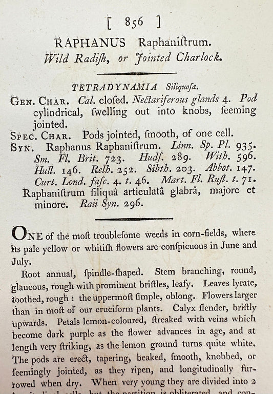 Antique Print - James Sowerby - Raphanus Raphanistrum - Wild Radish - F1